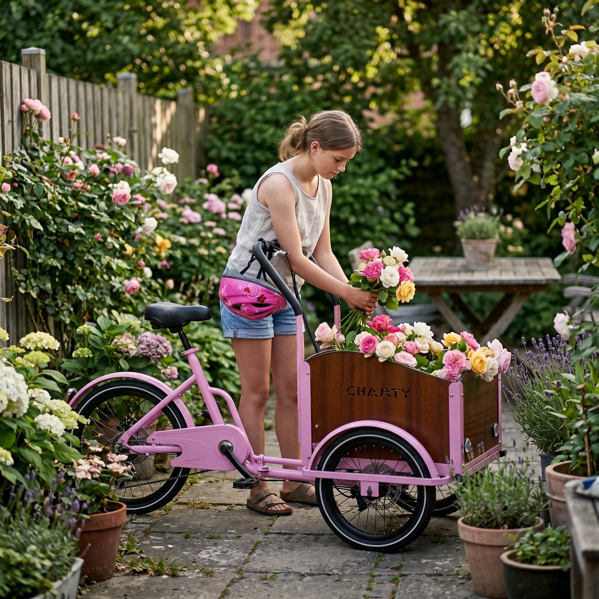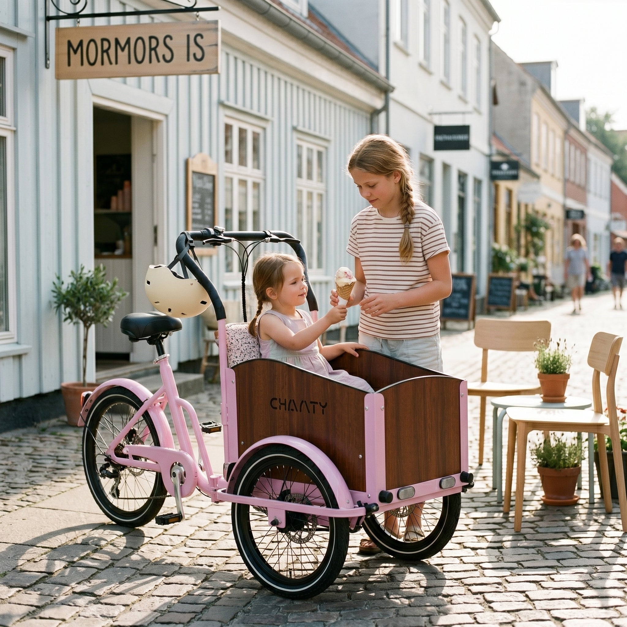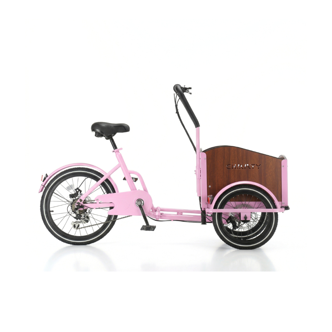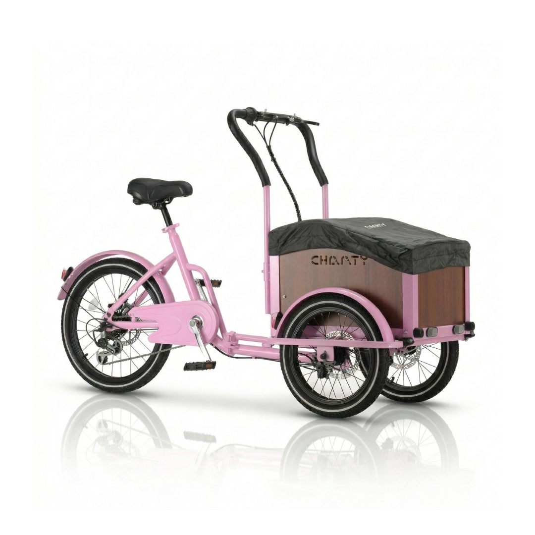 Chanty Cargo Teen er en rummelig og stabil børneladcykel udviklet til ældre børn og unge, der ønsker frihed, bevægelse og tryg transport. Den kombinerer dansk design med høj kvalitet, 7 Shimano-gear og skivebremser for og bag for maksimal kontrol. Den robuste ladkasse kan bære op til 40 kg, mens hele cyklen kan klare 150 kg + fører. Perfekt til skole, sport, fritid og transport af udstyr – bygget til hverdagens eventyr